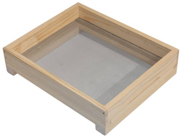 Der Liebig 3er-Ablegerboden ist ein niedriger Spezielboden der mit 2 Leisten eine Beute in 3 gleich große Räume teilt. Durch zwei Schiet die in die Beute eingehängt werden und durch die Nut in den Leisten des Bodens werden die Räume "Bienendicht" abtrennt.